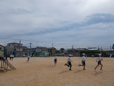 体育の授業中の5分間をつかって走っています。「かけ足がんばり表」に走った距離を記録し、小学校在学中、成長の記録として保存していきます。実施期間は、1・3・5年生が11/4~11/21、2・4・6年生は11/5~12/12です。