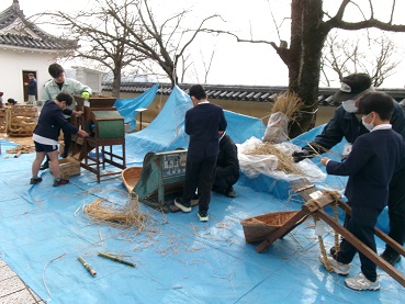 歴史資料館では、石臼や炊飯器などの昔の生活道具や農具などを実際に触らせていただきました。うすくち醤油資料館では、当時使われていた道具を見ながら、醤油の作り方や歴史について学びました。
