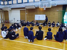 「たつの市人間関係づくりプログラム」で、御津小6年生と御津中2年生が交流しました。一緒にゲームをすることで子どもたちの距離がぐっと縮まりました。「楽しかった」という感想が口々に聞かれました。