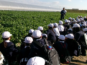 兵庫西農協御津野菜センターで校区の成山新田の歴史や野菜づくりについて学習した後、御津自慢の大根をひかせていただきました。