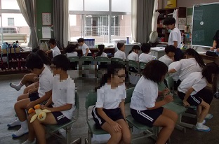 9/18 たてわり遊び 業間休みの時間、異学年の縦割りグループで、自分たちで決めた遊びを楽しみました。上級生が下級生を優しくリードする姿が、とても微笑ましく感じられました。 いすとりゲームでは、曲が止まるたびに歓声が上がりました。