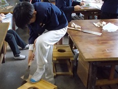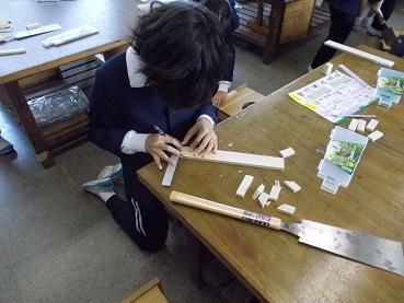 11/13 4年 のこぎりギコギコ ほとんどの人が初めてのこぎりを使うとあって、けがのないよう気をつけながら真剣に作業をすすめました。完成が楽しみです。 だんだん上手になってきたよ 何をつくろうかな 楽しい!