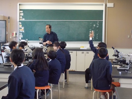 兵庫県立大学からお越しいただいた先生に教えていただきながら、電子顕微鏡を使ってアメーバの観察をしました。子どもたちは目を輝かせながら、アメーバが餌を食べる様子に見入っていました。「アメーバが分裂しているところを見てびっくりした」「生物学っておもしろいなと思った」といった感想が聞かれました。