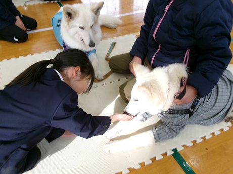兵庫県動物愛護センター龍野支所よりゲストティーチャーをお招きしました。 聴診器で犬の心音を聴いたり、実際に触れ合ったりする活動を通して、動物にも「心」があり「大切な命」であることに気づきました。