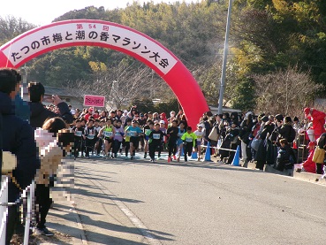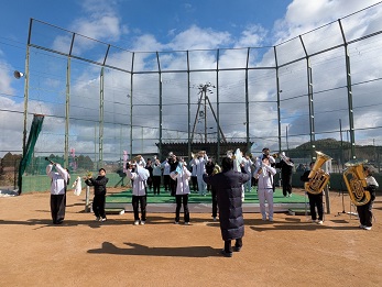 時折、雪もちらつく寒い一日となりましたが、会場ではたくさんのランナーが元気いっぱい駆け抜けました。今年はたつの市制施行20周年を記念する特別な大会。そのオープニングセレモニーに、御津小中吹奏楽部が参加しました。さらにその後も2回の演奏を行い、力走するランナーの皆さんを力強い音色で応援し、労いました。