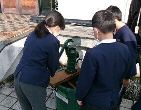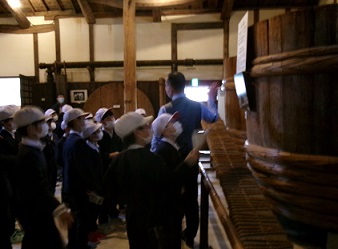 2/3・4・5 3年 昔の道具体験・醤油資料館見学 歴史資料館では、石臼や炊飯器などの昔の生活道具や農具などを実際に触らせていただきました。うすくち醤油資料館では、当時使われていた道具を見ながら、醤油の作り方や歴史について学びました。 手押しポンプで、水を汲み上げました。 石臼でひきたてのきな粉を食べました。 しょうゆの作り方やおいしさのひみつについて学びました。