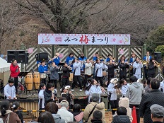 2/11 第34回みつ梅まつり 地元の各種団体による模擬店や鯛すくいなどの園内アトラクション、キッチンカーの出店もあり、大勢の観光客で賑わいました。御津小PTAは、焼き鳥屋を出店しました。ステージアトラクションには、踊りや歌、演奏、バトンなどでみつっ子もたくさん出演しました。 やきとりを買ってくださったお客様ありがとうございました。 御津・中吹奏楽部with Mega Tone Jazz Orchestra